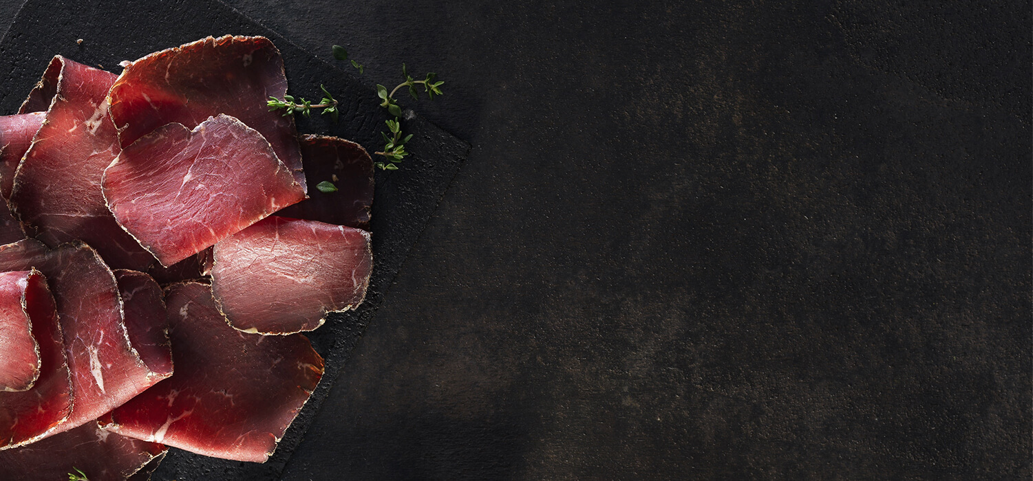 Das Walliser Trockenfleisch IGP stammt von den edlen Stücken vom Rindsstotzen. Diese ausschliesslich aus der Schweiz stammenden Fleischstücke werden nach der altüberlieferten Rezeptur der Familie Bagnoud gewürzt und gesalzen.